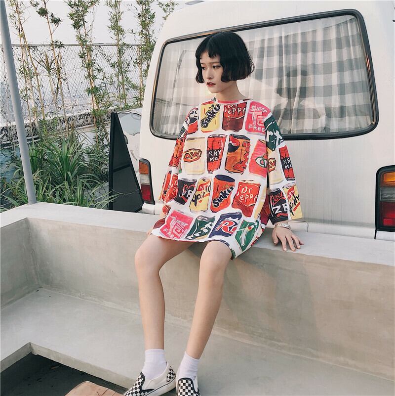Z-20194 Tシャツ ロングTシャツ ゆったり ルーズシルエット ミニワンピース チュニック 大きいサイズ ラウンドネック 個性的 柄 レトロ カラフル カジュアル ルーズ レディース 春夏 | K.M-base