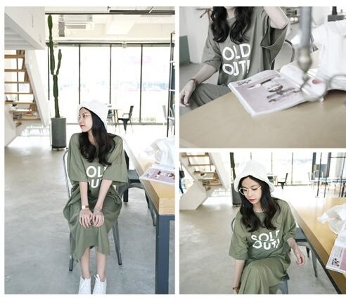 Z-20196 Tシャツ ロングTシャツ ワンピース ロングワンピース ミモレ丈 マキシ丈 半袖 五分袖 ルーズシルエット ゆったり 無地 ロゴ シンプル カジュアル レディース 春夏