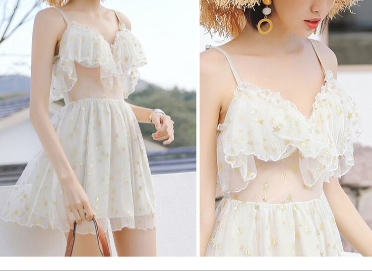 フリルとレースをふんだんに使った星柄ワンピース水着です!