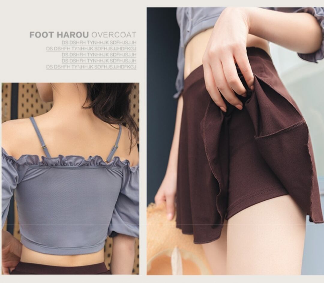 オフショルダーとレースアップの甘めガーリーなトップスが可愛いビキニです!