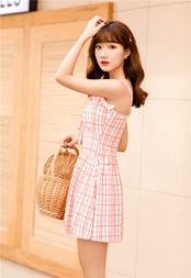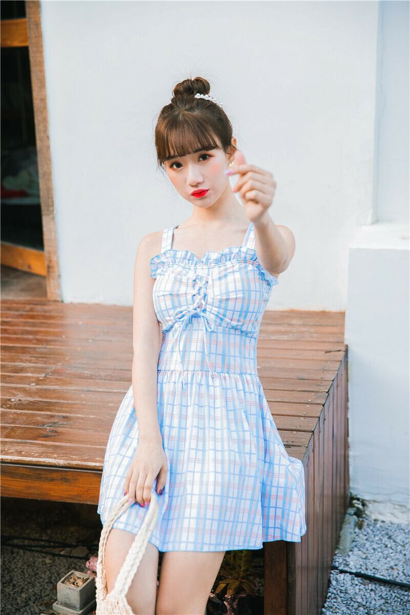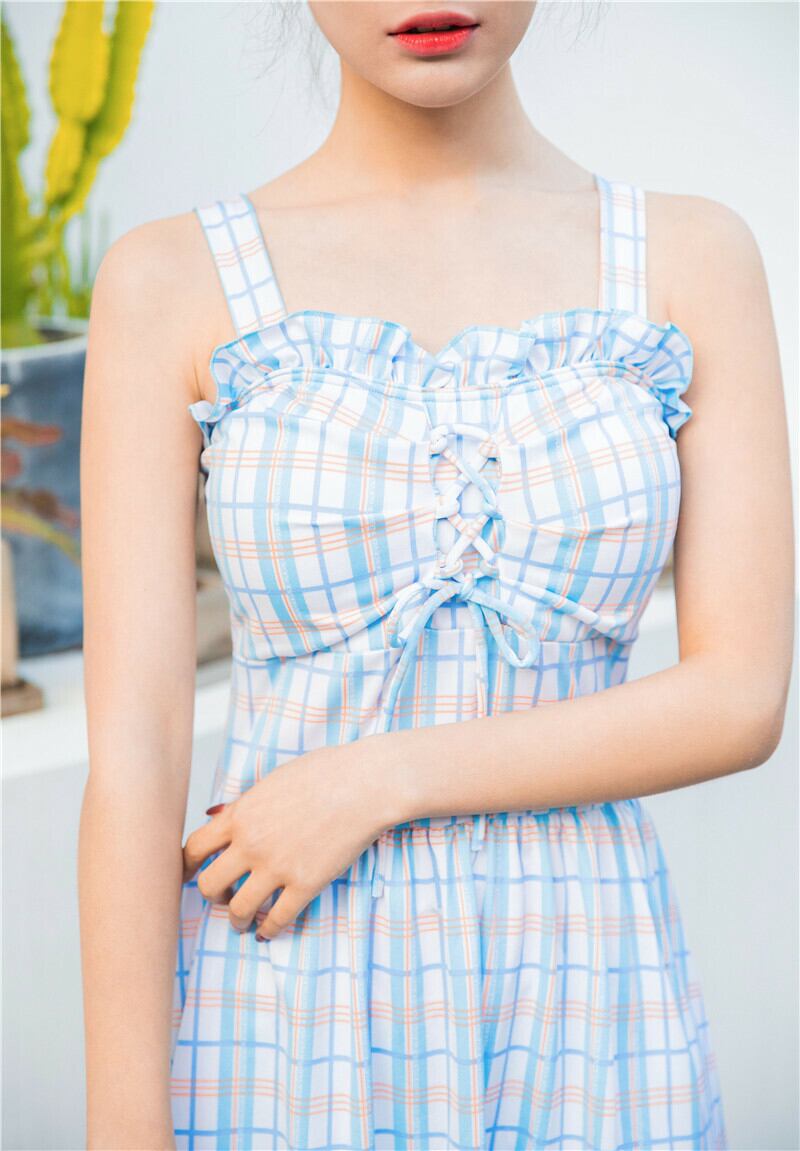 胸のレースアップとフリル、ギンガムチェックがガーリーで女の子らしさ全開のワンピース水着です!