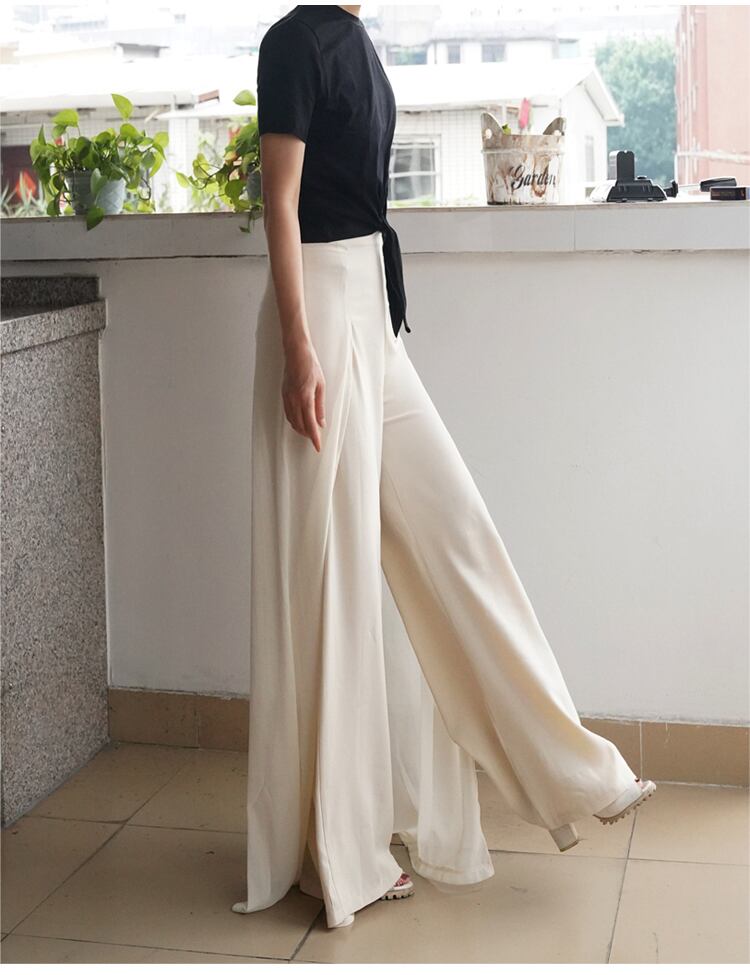 ストレートパンツにもう一枚重なったレイヤーデザインがワイドパンツのような爽やかさを見せるロングパンツです!